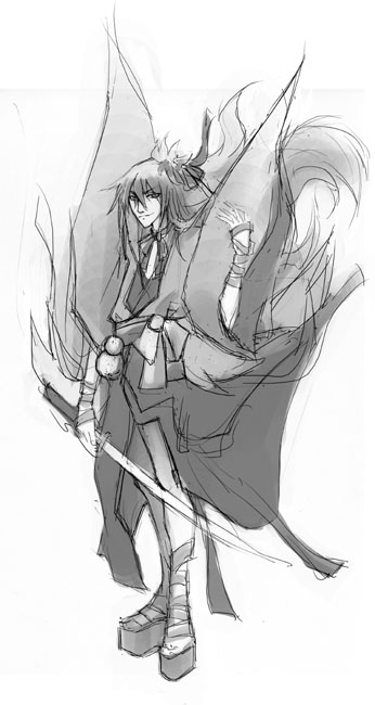 Местный долгострой. Заказ на картинку с оригинальным персонажем гее-самураем Мияби. Чар абсолютно шикарен, но мелких деталей у него чуть более, чем дохуя.